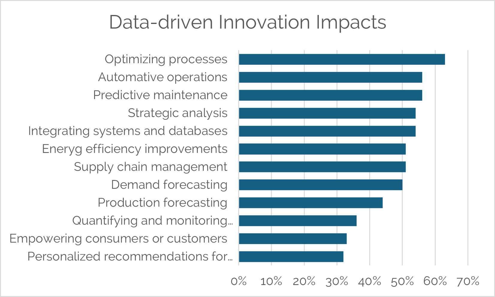 Above: % of respondents from the pipeline industry answering major impact or massive impact when asked "How impactful are the following areas of data-driven innovation for your business?"
